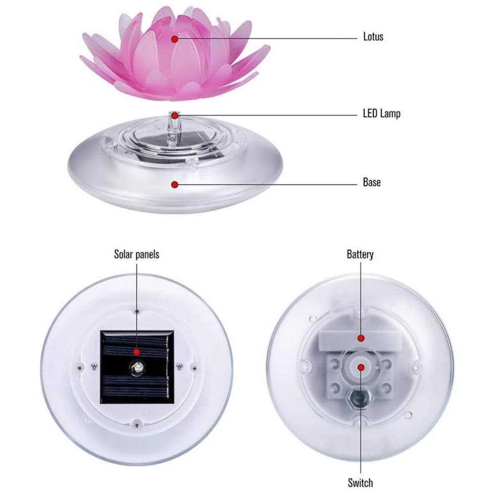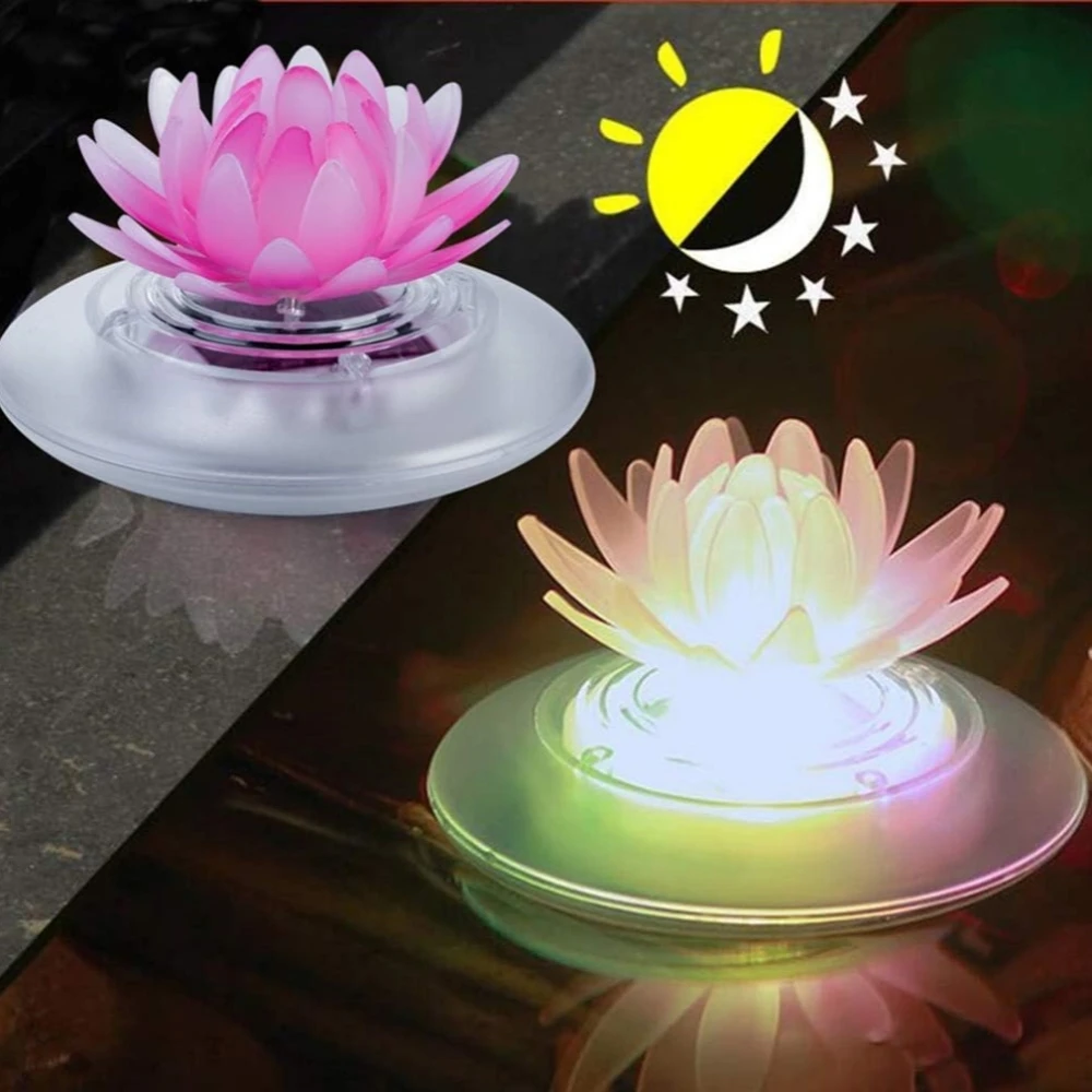 Solar Floating Pool Lights Outdoor Lotus Pond Decoration Lighting Waterproof RGB LED Lotus Lamp for Swimming Pool,Fountain