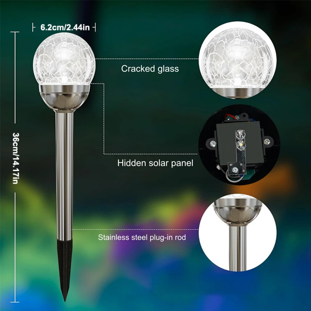 Solar Glass Ball Garden Lights Outdoor Multi-Color Changing&White Lights Solar Pathway Decorative Lighting Waterproof for Patio