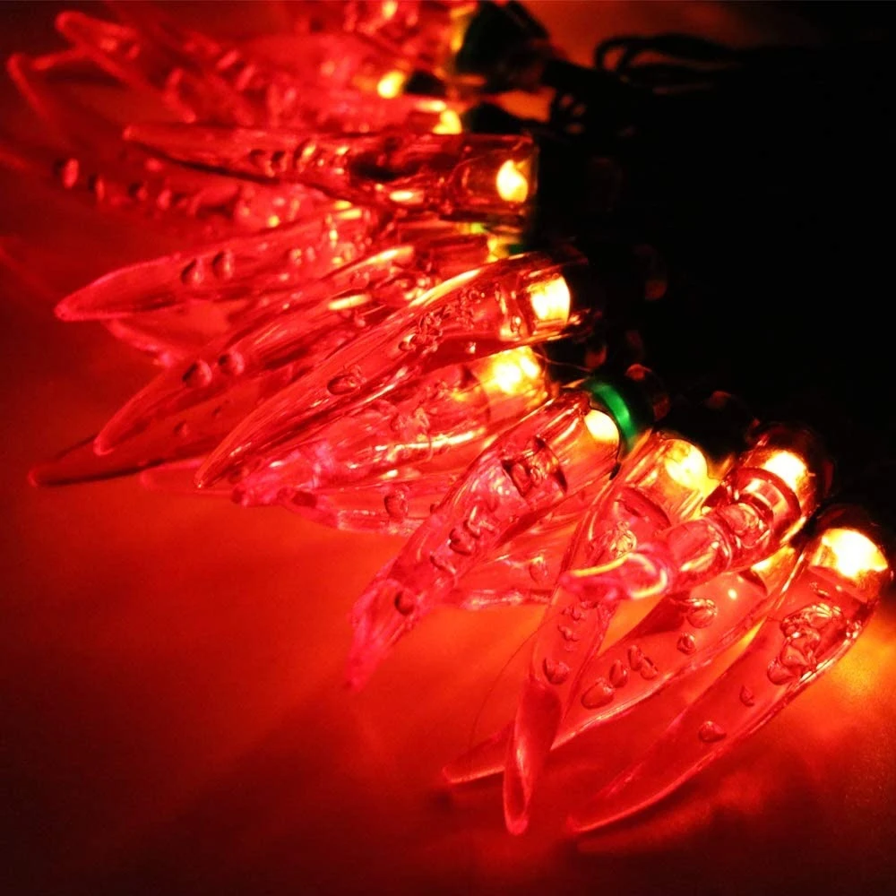 1.UNIQUE RED CHILI PEPPER STRING LIGHTS-IP65 waterproof,2 Mode flashing lights,palm tree led,Perfect to Kitchen,dinner room,table display.solar string lights is great for garden decorations,outdoor Xmas decorations and tree decoration,very beautiful.