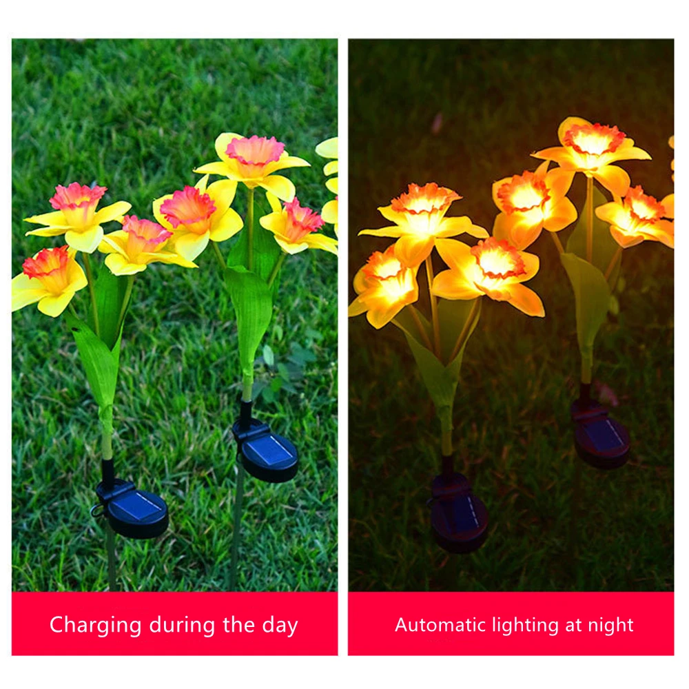 Solar LED Lights Garden Outdoor Balcony Decorative Solar Daffodils Flower Lights LED Narcissus Lotus Lawn Wedding Light